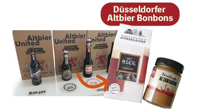 デュッセルドルフの誇るアルトビアがキャンディーに。アルトビアはほかにも、マスタード、スプレッド、などにも使われていることも。アルトビア味のセットをおみやげにしても面白い。