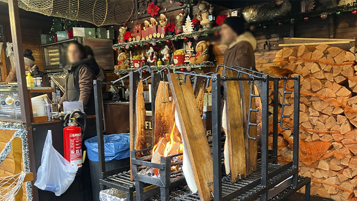 冷えた体をポカポカにしてくれるスープ類もクリスマスマーケットの定番。人気のグーラシュは、ハンガリー発祥のスープで、ドイツで進化を遂げたビーフシチューのようなもの。牛肉とパプリカを長時間じっくり煮込んでコクのある味わいに仕上げています。